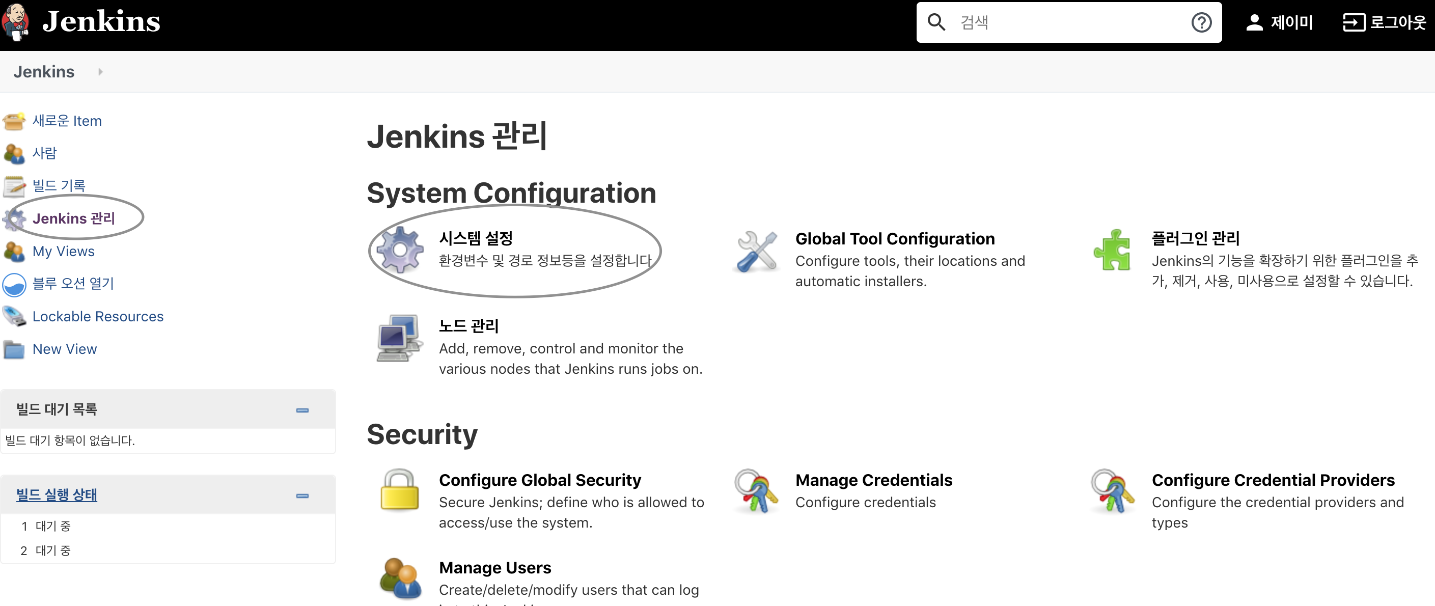 [Jenkins 관리] - [시스템 설정]