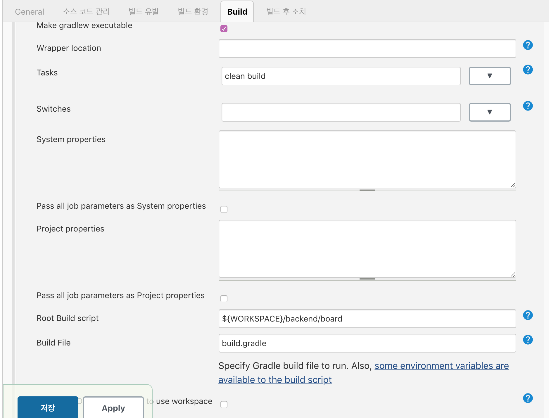 Make gradlew executable 체크(하지 않으면 권한 에러로 빌드 불가)