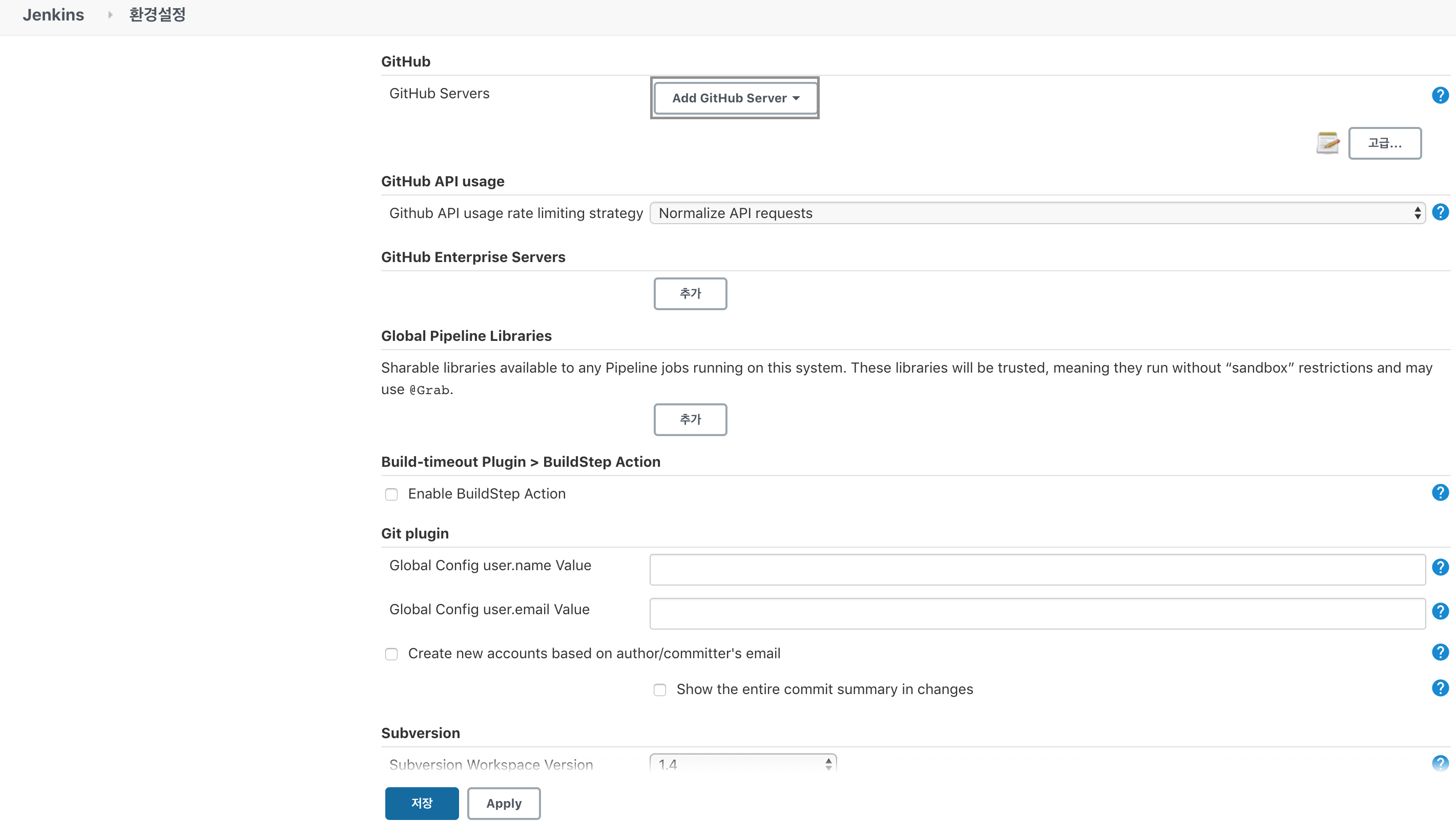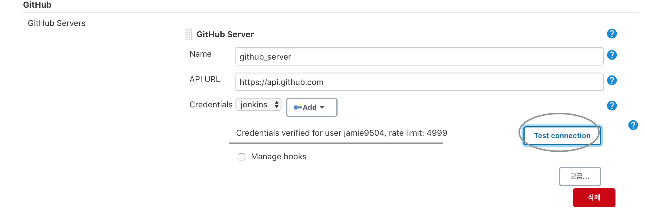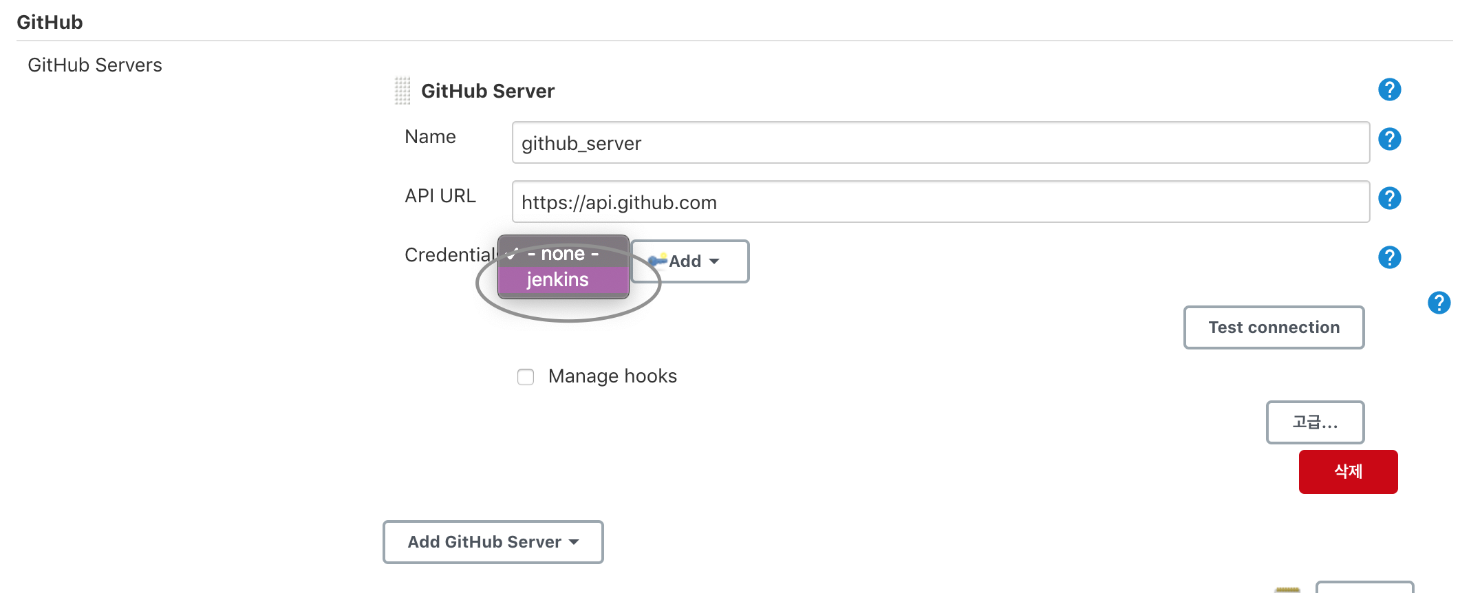 [Jenkins 관리] - [시스템 설정] - [GitHub] - [Add GitHub Server]