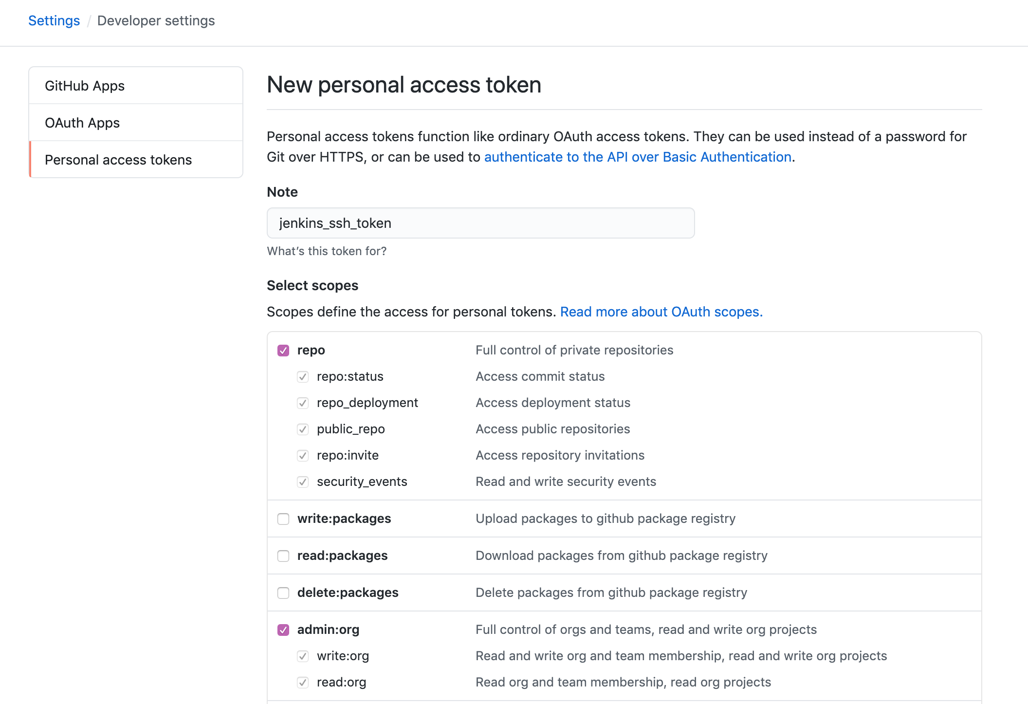 - repo / admin:org / admin:repo_hook - Generation token