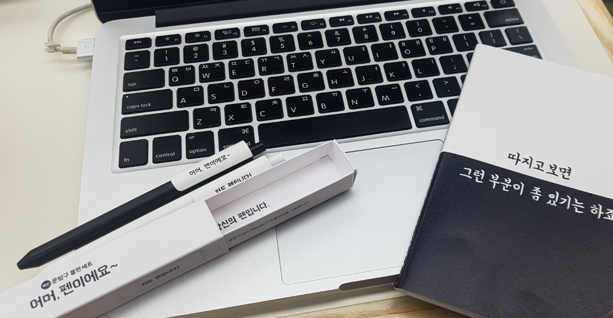 루터회관에 시험을 보러 들어가자마자, 신분증 확인을 했다. 신분증 필수! 그리고서 직원님들(아마 우아한 형제들 직원님들이신 것 같았다)께서 펜과 노트를 나눠주셨는데, 펜이 너무 귀여웠다. 아직 아까워서 필기도 못 해봤다는 사실. 노트는 종류가 많았는데 가장 문구가 와 닿는 노트로 골랐다. 하나씩 다 갖고 싶었지만, 욕심을 내려놓았다.